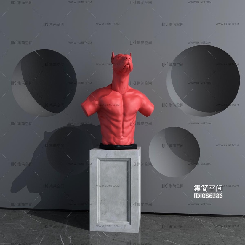 狗头人雕塑摆件摆台 3d模型下载 [模型ID:86286]