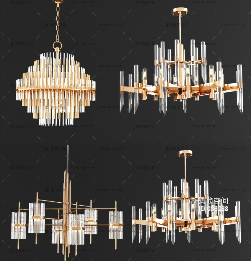 新中式轻奢水晶吊灯组合 3d模型下载 [模型ID:86288]