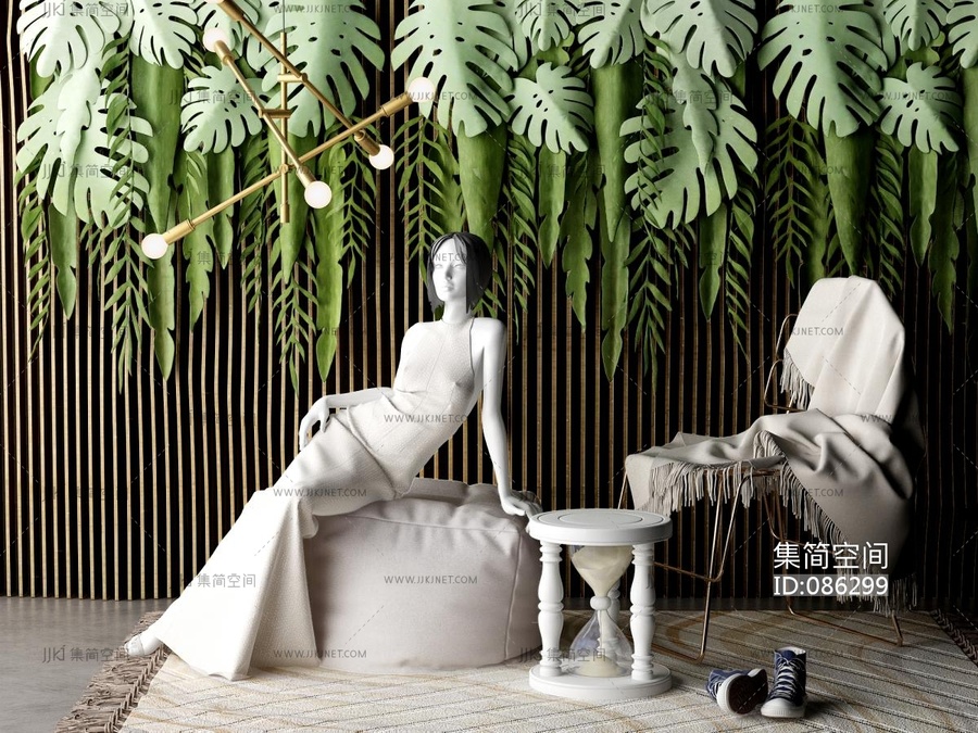 北欧人物模特绿植强服装店模特橱窗单椅组合 3d模型下载 [模型ID:86299]