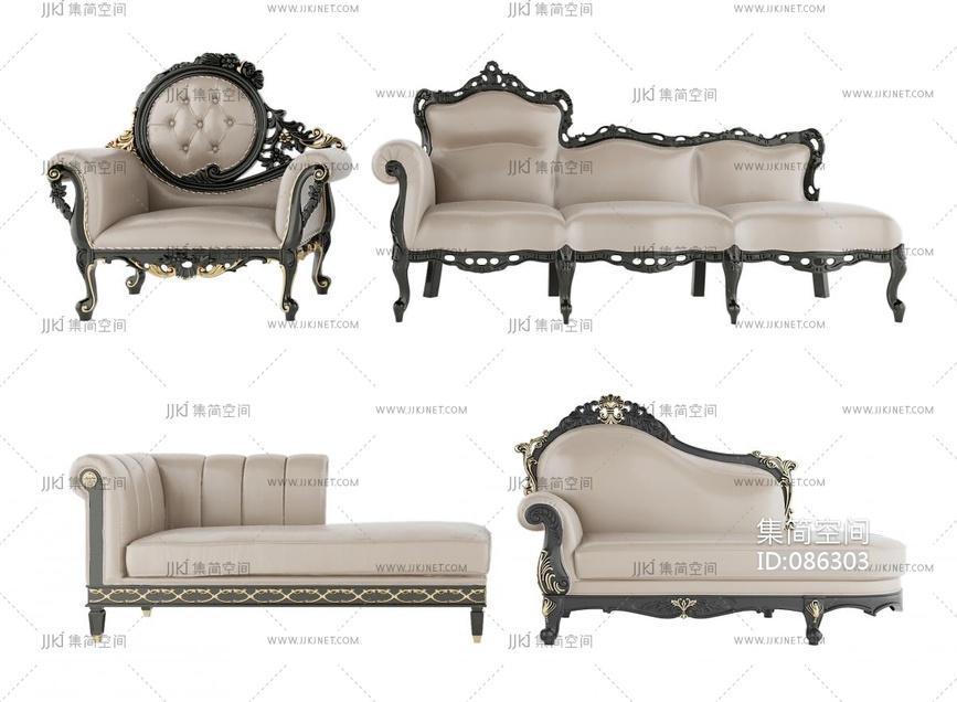 欧式古典法式贵妃椅贵妃榻,卧榻躺椅 3d模型下载 [模型ID:86303]