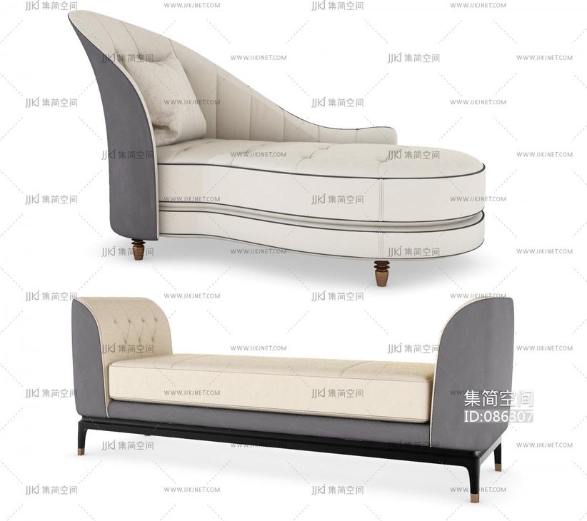 欧式贵妃椅贵妃榻,卧榻躺椅床尾凳 3d模型下载 [模型ID:86307]
