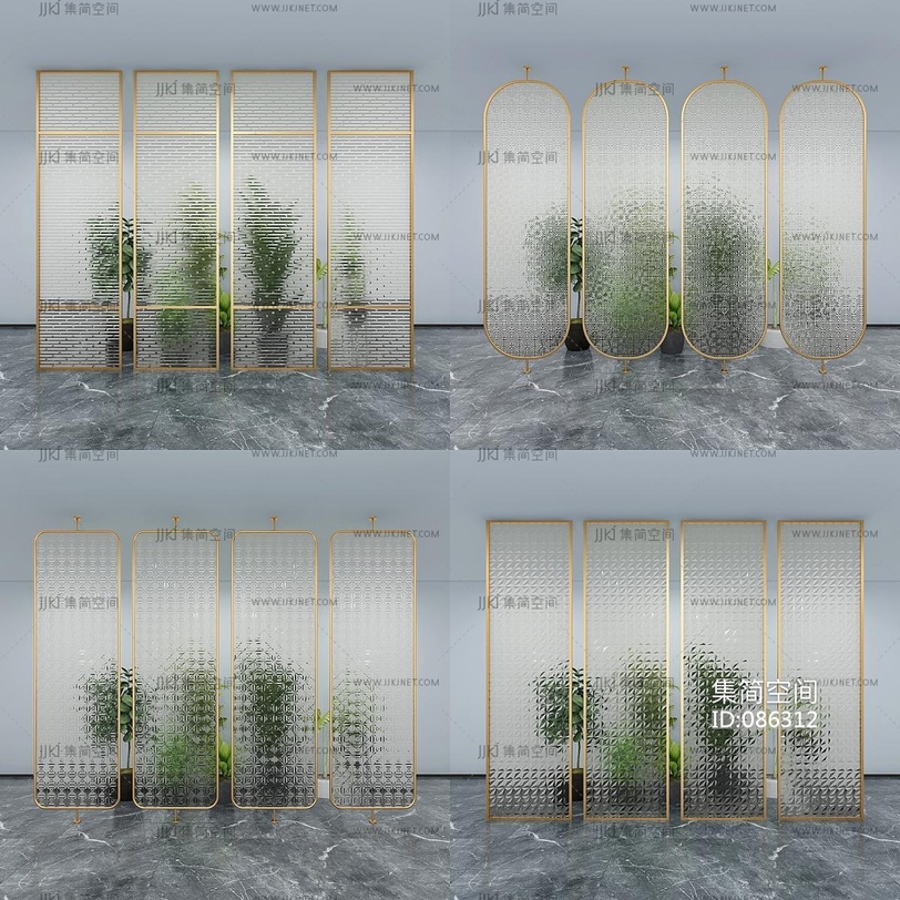 现代屏风隔断波浪造型背景墙3D模型3d模型下载