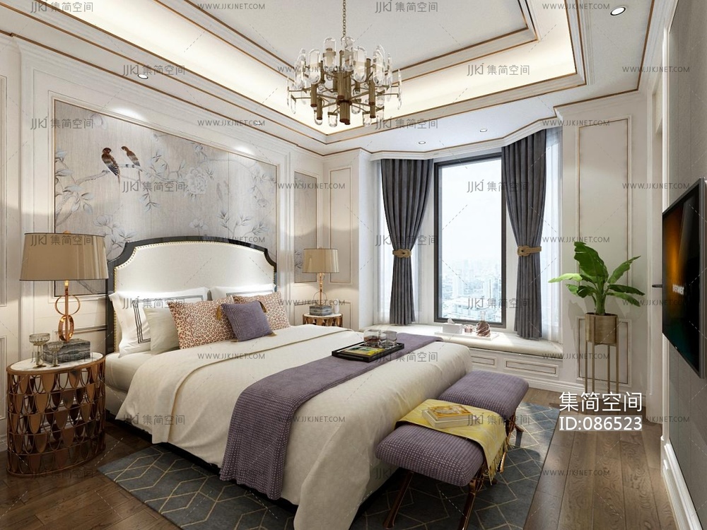 6法式中古家居卧室_主卧_飘窗卧室_高级灰卧室3D模型cr3d模型下载