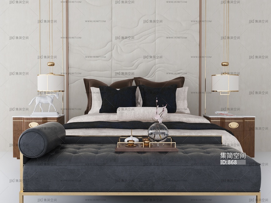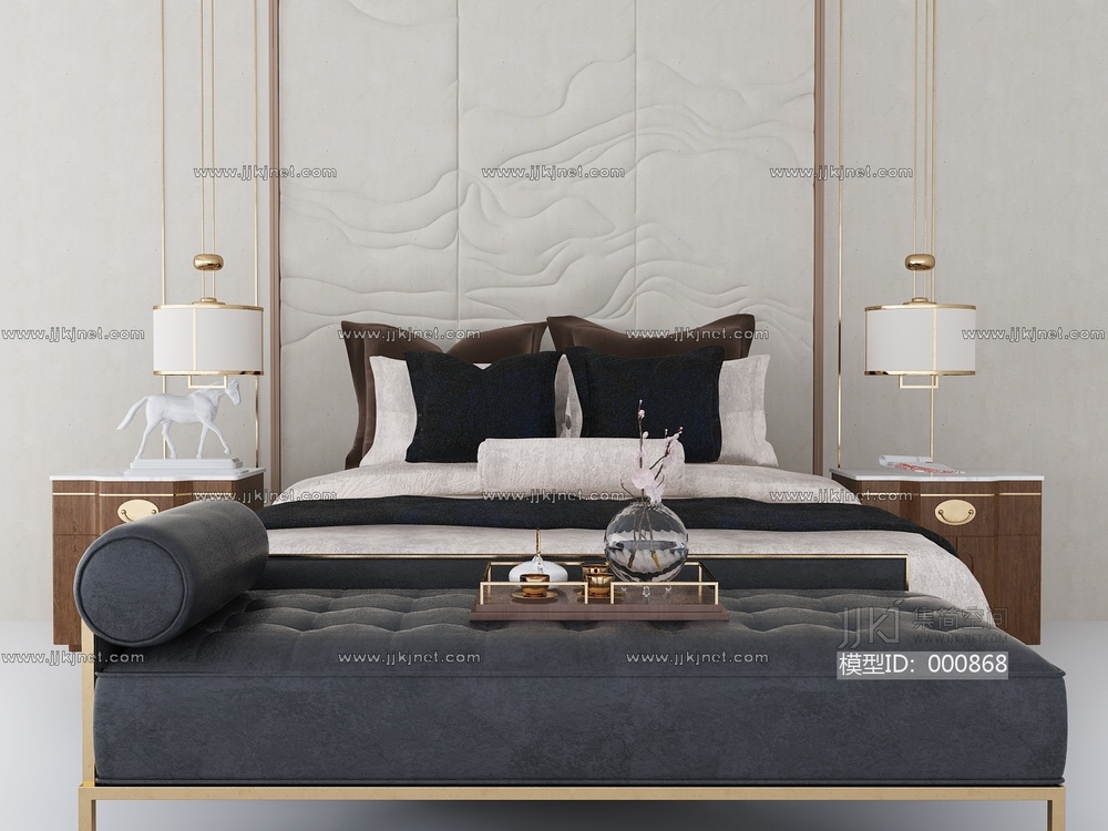 Z27-0619东南亚新中式高背休闲长椅沙发罗汉床纱幔3d模型下载