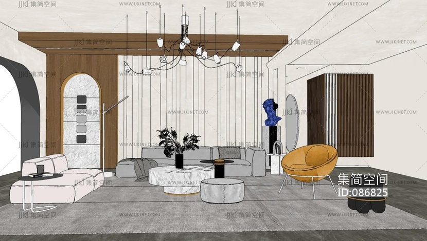 现代客厅,沙发单人沙发- su草图模型下载 [模型ID:86825]