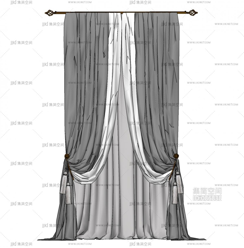 欧式古典窗帘_拉帘组合SU模型su草图模型下载
