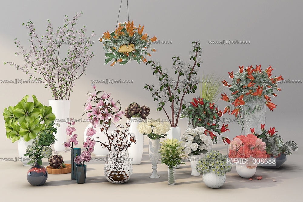 Z10-1020现代玻璃陶瓷花瓶玫瑰百合插花组合 3d模型下载 [模型ID:8688]