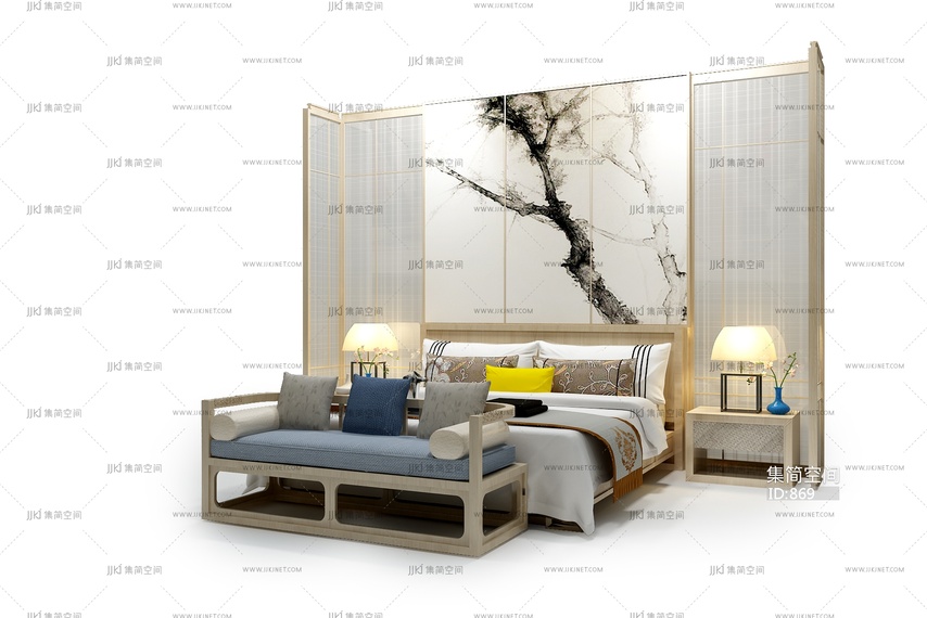 Z27-0619东南亚新中式高背休闲长椅沙发罗汉床纱幔3d模型下载