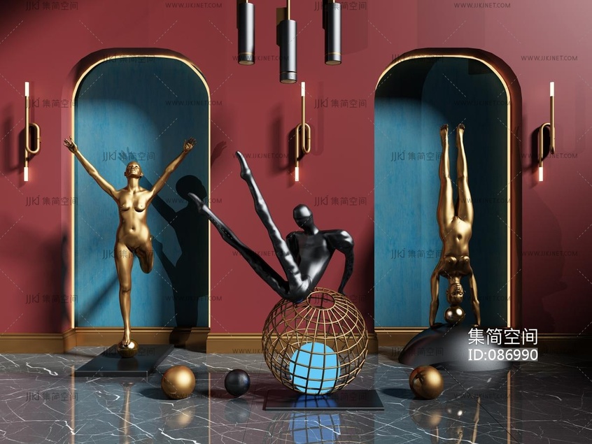 新中式十二兽首鎏金雕塑 雕像中式雕塑摆件3D模型3d模型下载
