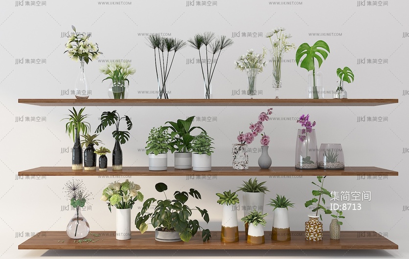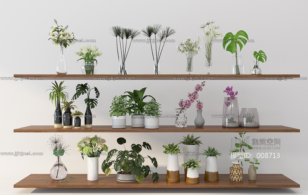 Z33-1020现代绿植花卉花瓶组合 3d模型下载 [模型ID:8713]