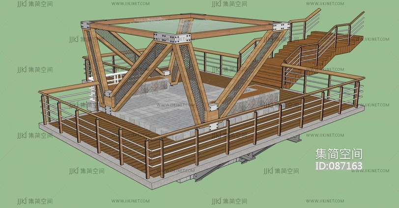 现代户外木质凉亭 su草图模型下载 [模型ID:87163]