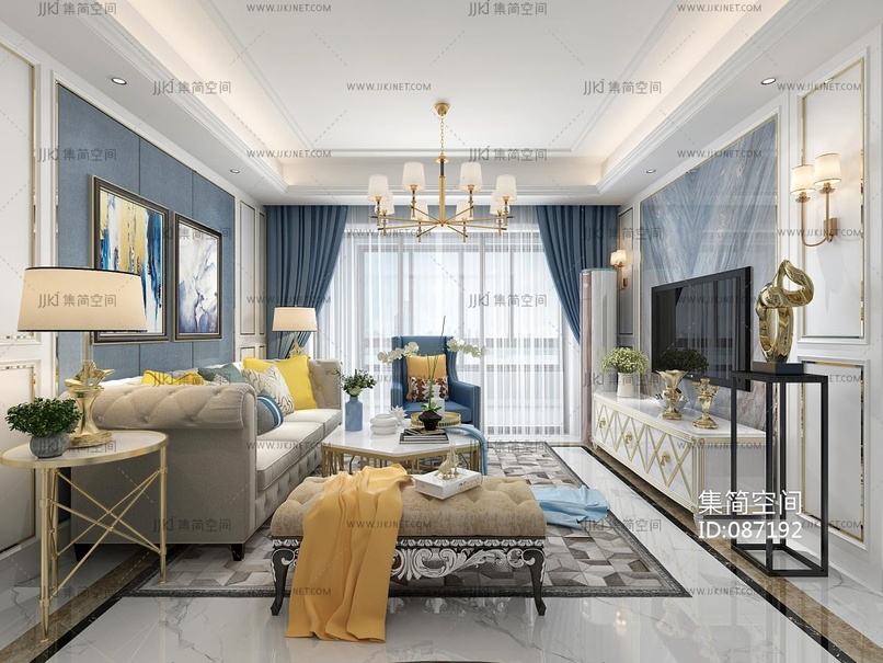 法式家居客厅3D模型3d模型下载