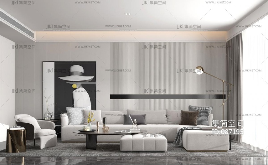 现代客厅转角沙发, 3d模型下载 [模型ID:87195]