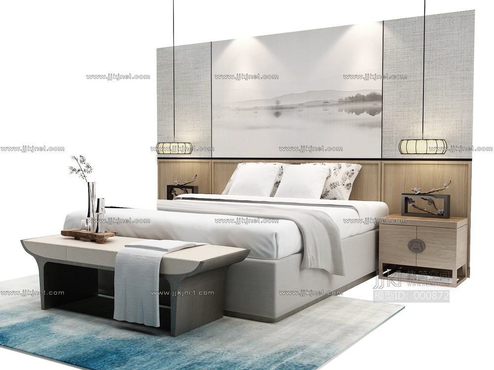 Z27-0619东南亚新中式高背休闲长椅沙发罗汉床纱幔3d模型下载