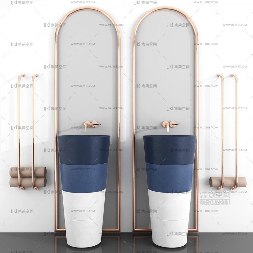 卫浴台盆镜子现代立柱式,柱状盆台盆 3d模型下载 [模型ID:87211]