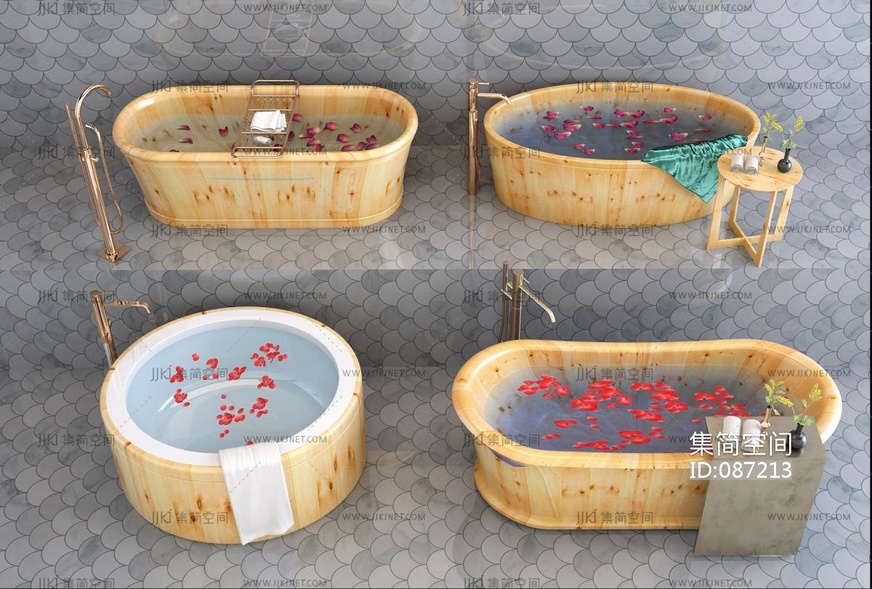 现代木质浴缸浴桶, 3d模型下载 [模型ID:87213]