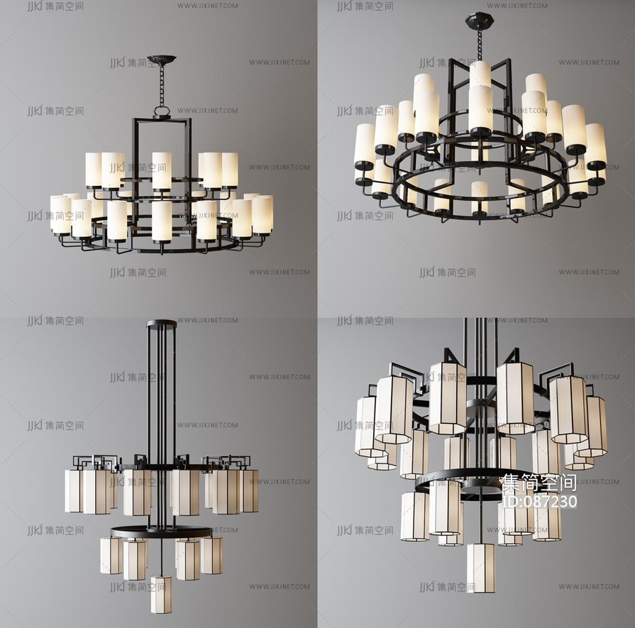新中式铁艺吊灯 3d模型下载 [模型ID:87230]