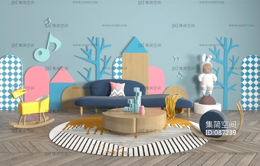北欧儿童沙发,摇椅木马 3d模型下载 [模型ID:87239]