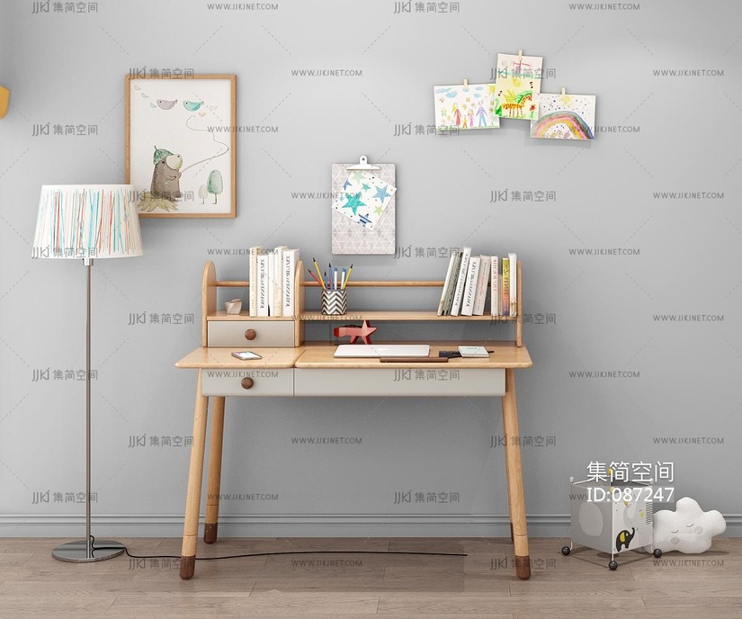 北欧原木儿童书桌 3d模型下载 [模型ID:87247]