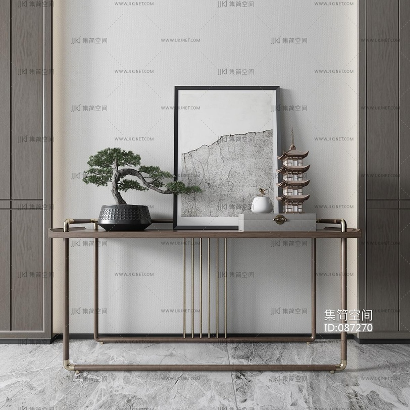 新中式端景台,条案,摆台,端景台盆景,摆件,塔 3d模型下载 [模型ID:87270]