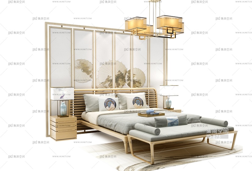 Z27-0619东南亚新中式高背休闲长椅沙发罗汉床纱幔3d模型下载