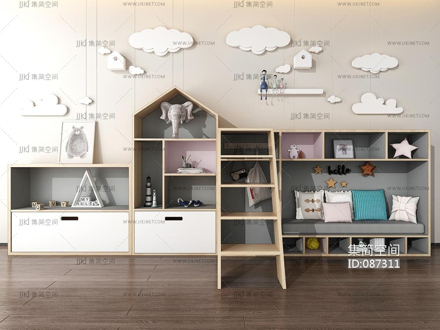 北欧实木儿童柜,装饰柜,收纳柜,云朵造型 3d模型下载 [模型ID:87311]