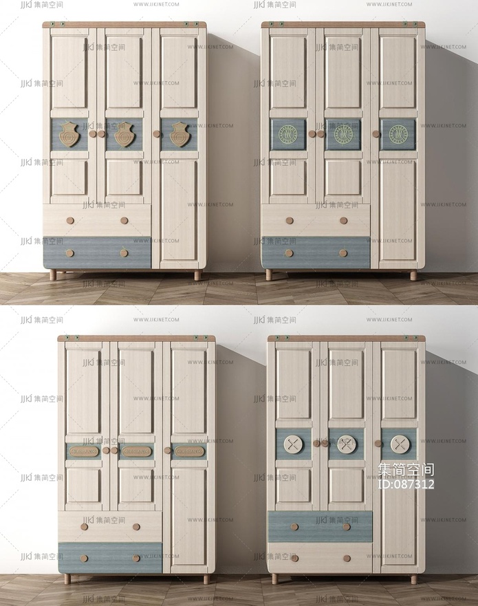 北欧,简欧式实木儿童衣柜 3d模型下载 [模型ID:87312]