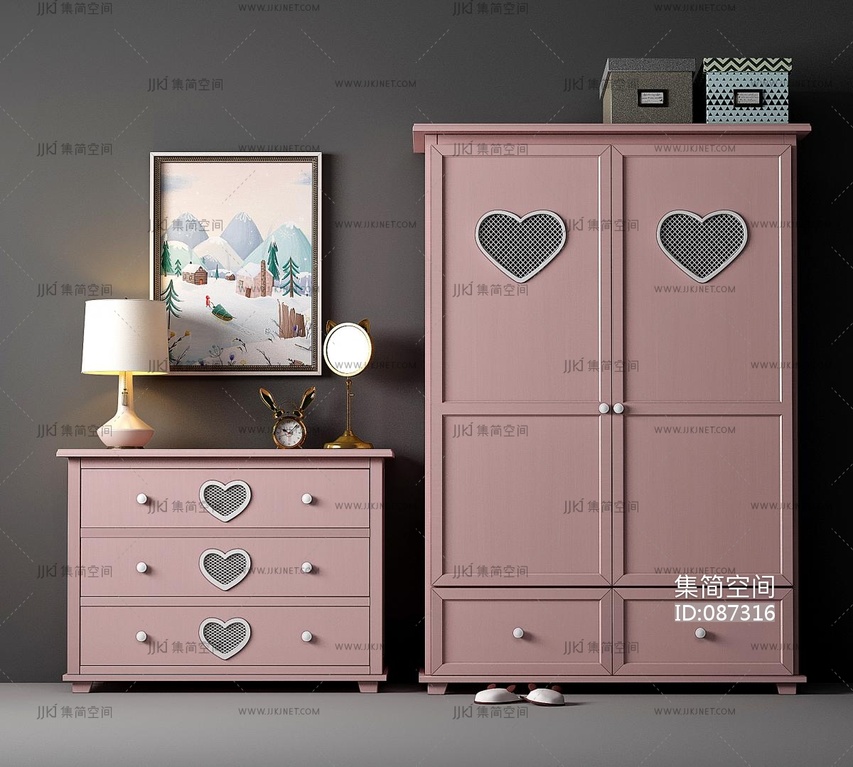 女儿房,女孩房,儿童边柜储物柜衣柜 3d模型下载 [模型ID:87316]