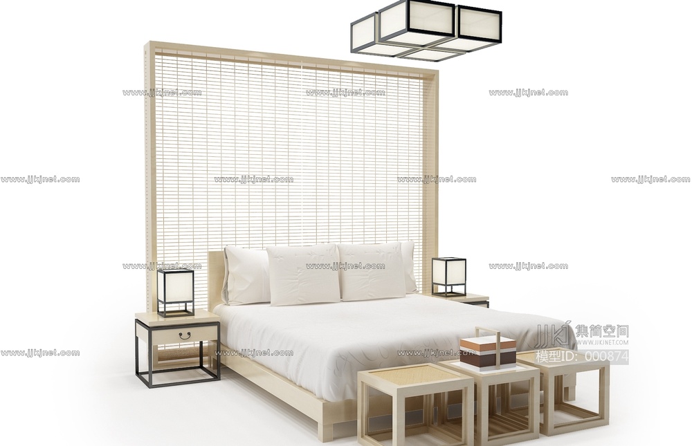 Z27-0619东南亚新中式高背休闲长椅沙发罗汉床纱幔3d模型下载