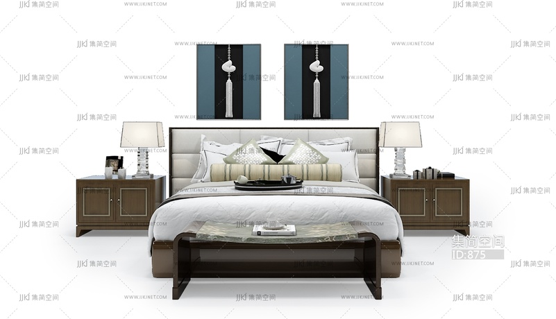 Z27-0619东南亚新中式高背休闲长椅沙发罗汉床纱幔3d模型下载
