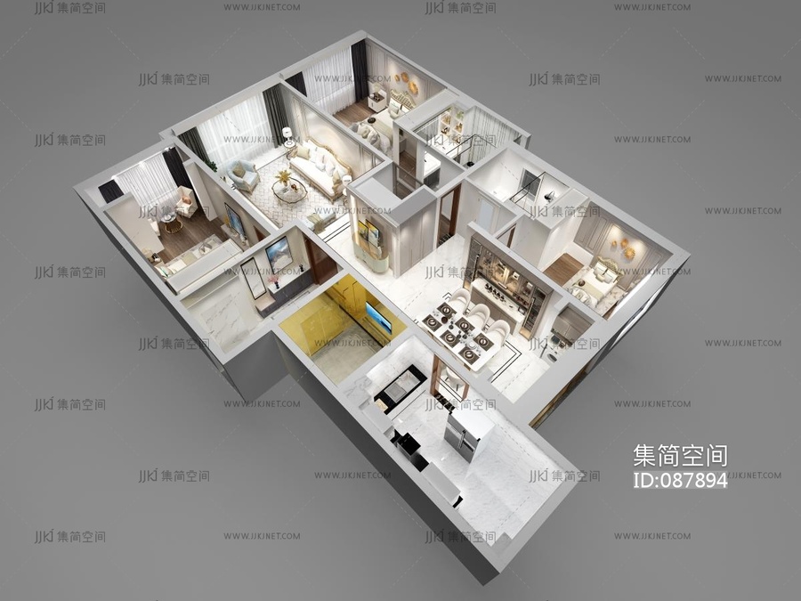 欧式样板间,鸟瞰 3d模型下载 [模型ID:87894]