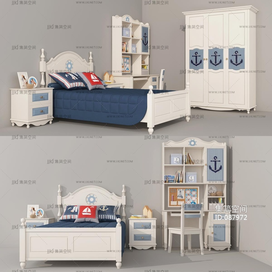 地中海实木儿童床儿童柜 3d模型下载 [模型ID:87972]