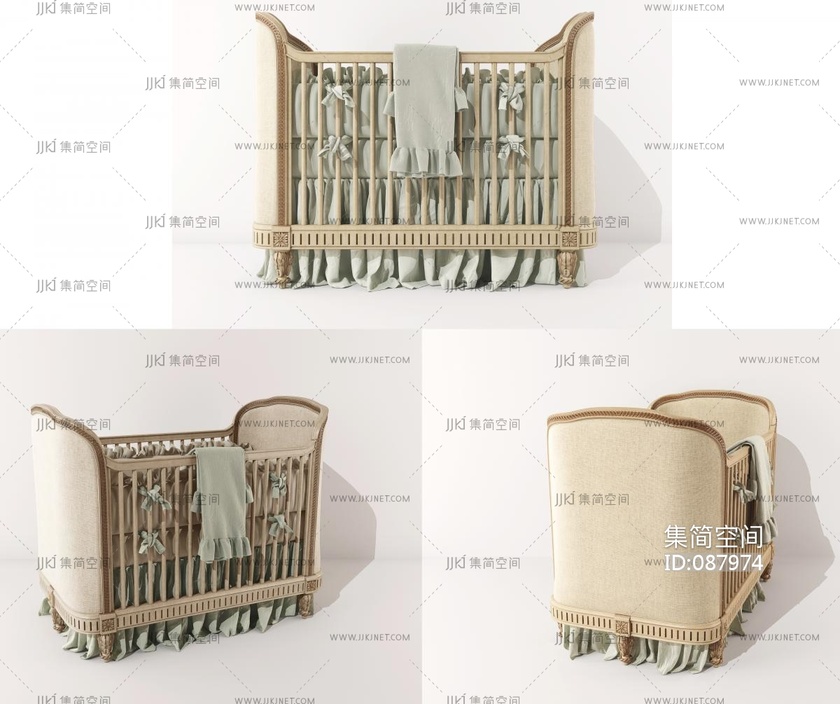 欧式布艺婴儿床 3d模型下载 [模型ID:87974]