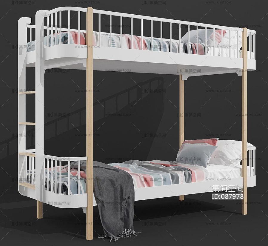 Z09-0717现代上下铺儿童床 3d模型下载 [模型ID:87978]