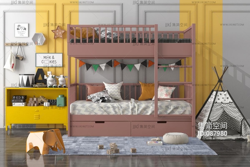 Z12-0717现代上下铺儿童床 3d模型下载 [模型ID:87980]