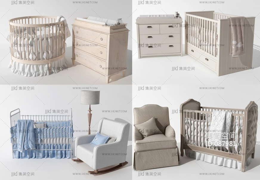 现代婴儿床边柜摇摇沙发 3d模型下载 [模型ID:87981]