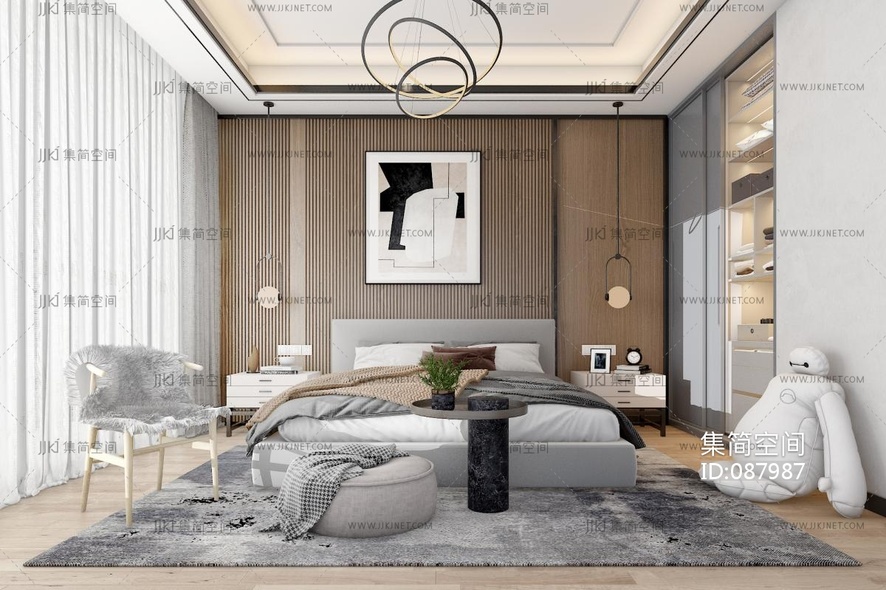 Z19-0717现代北欧轻奢卧室 3d模型下载 [模型ID:87987]