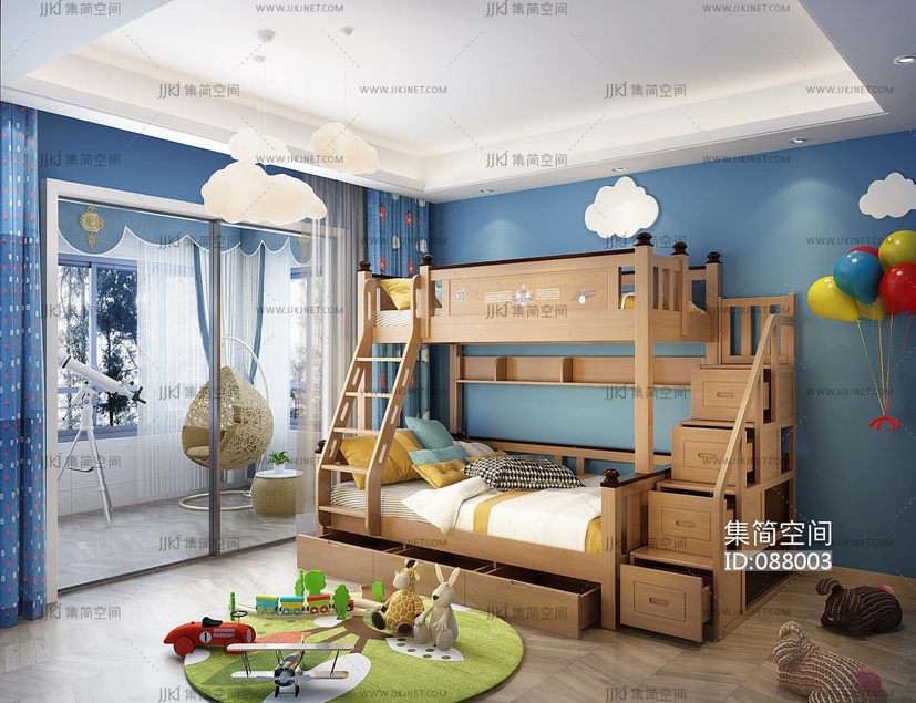 Z13-0715北欧上下铺儿童床,气球玩具 3d模型下载 [模型ID:88003]