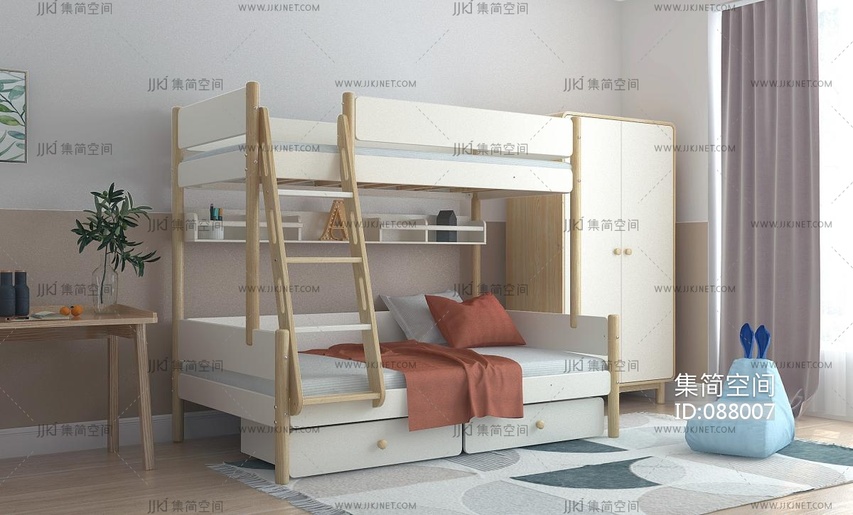 Z17-0715北欧原木上下铺儿童床,学习桌,单人沙发 3d模型下载 [模型ID:88007]