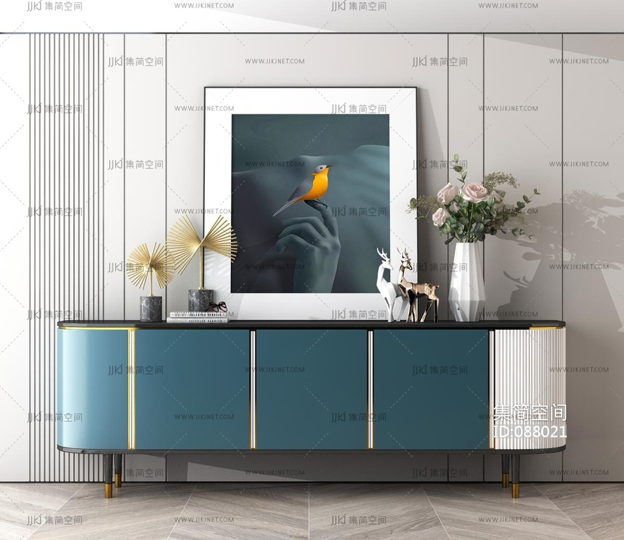 Z09-0721现代简欧式轻奢电视柜,玫瑰花,花瓶 3d模型下载 [模型ID:88021]