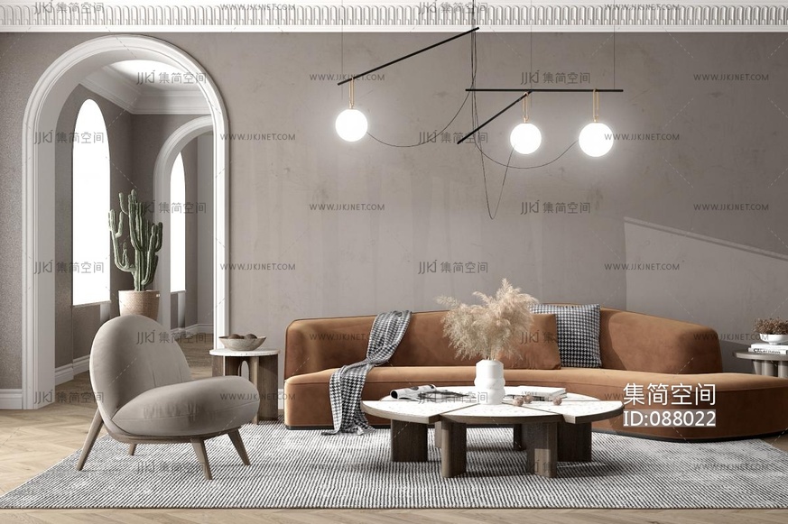03-奶油中古沙发组合_沙发茶几组合_异形沙发_金属茶几_单人休闲椅_模块沙发3D模型3d模型下载