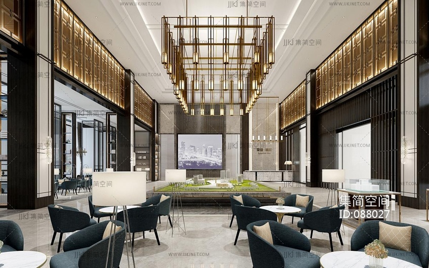 Z16-0721新中式售楼大厅,沙盘区 3d模型下载 [模型ID:88027]
