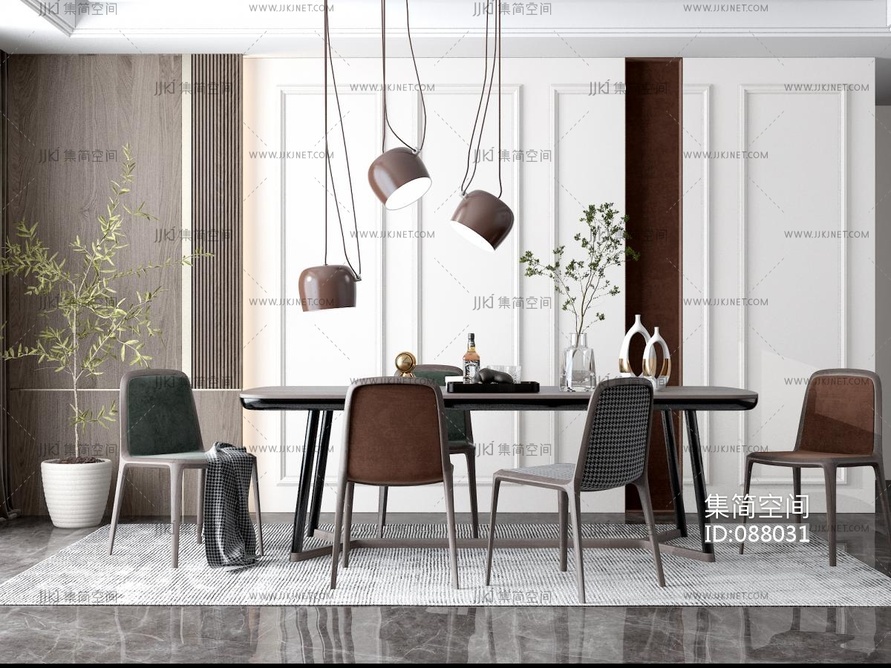 Z20-0721现代餐桌椅,吊灯盆栽 3d模型下载 [模型ID:88031]