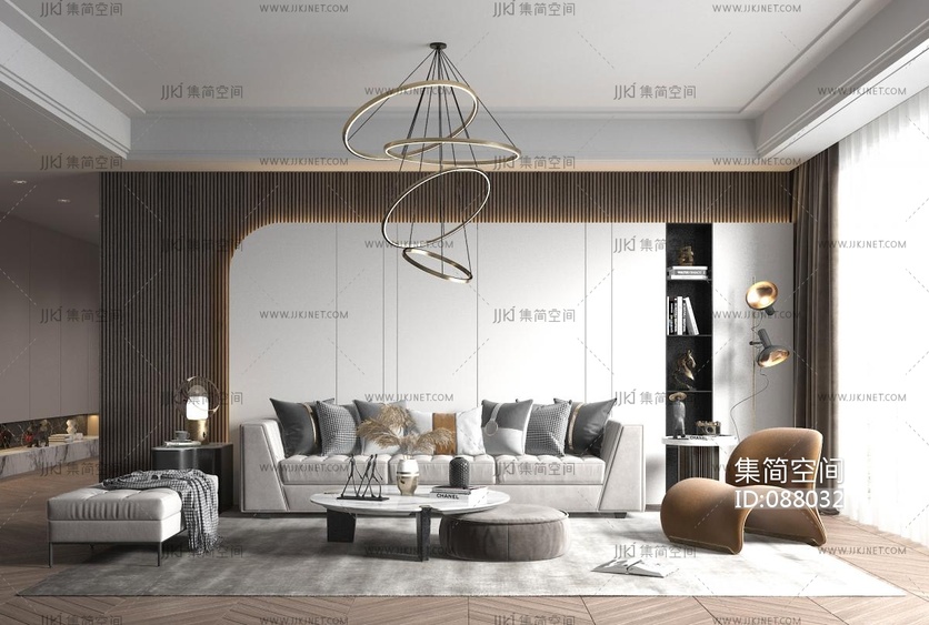 Z21-0721现代客厅,沙发单人沙发,沙发凳,茶几异形吊灯 3d模型下载 [模型ID:88032]