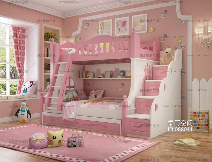 Z02-0716北欧儿童女孩房儿童上下床,上下铺 3d模型下载 [模型ID:88041]