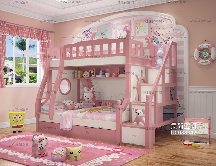 Z03-0716北欧儿童女孩房儿童上下床,上下铺 3d模型下载 [模型ID:88042]
