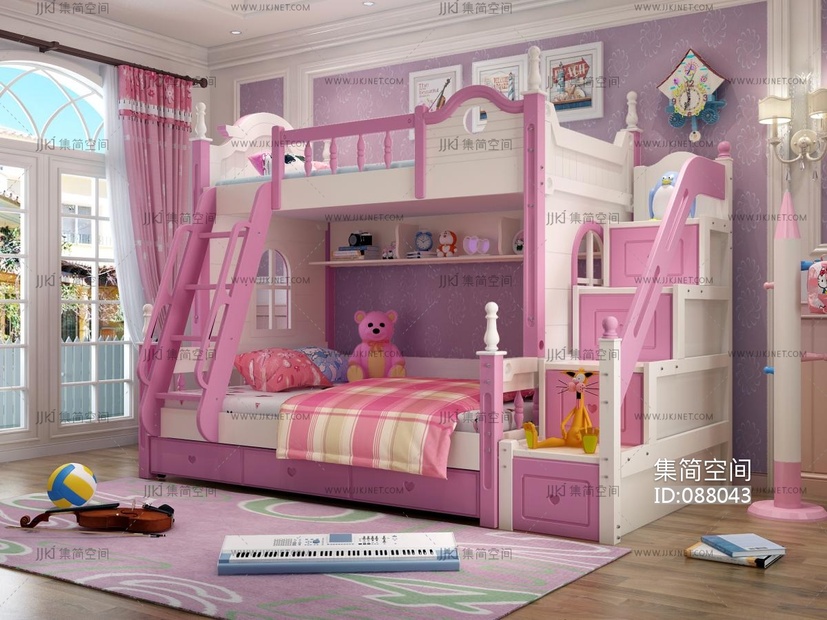 Z04-0716北欧儿童女孩房儿童上下床,上下铺,电子琴手提琴 3d模型下载 [模型ID:88043]