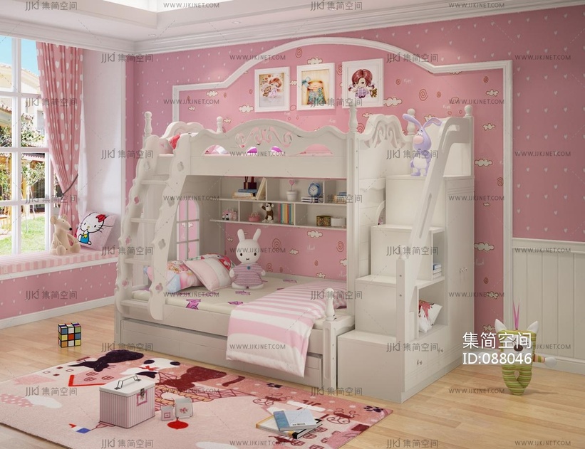 Z07-0716韩式欧式女孩儿童上下床,上下铺 3d模型下载 [模型ID:88046]
