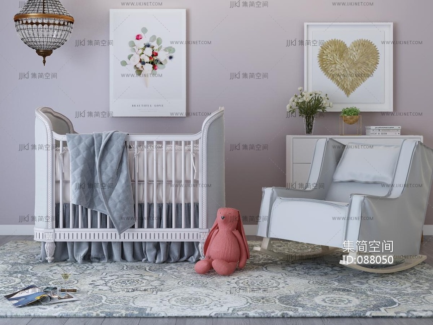 Z12-0716美式欧式婴儿床摇椅,摇篮,兔子玩具 3d模型下载 [模型ID:88050]