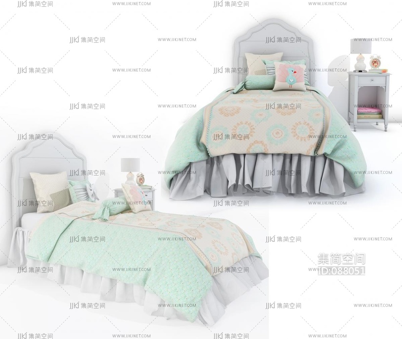 Z13-0716欧式美式布艺儿童床,单人床,床头柜 3d模型下载 [模型ID:88051]